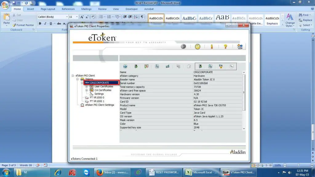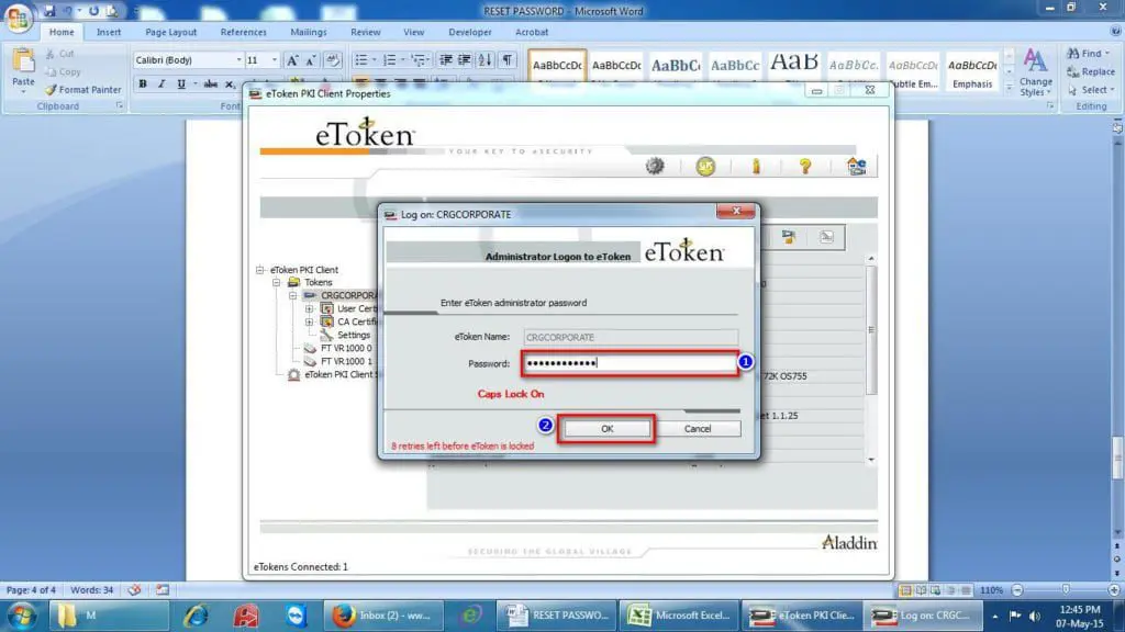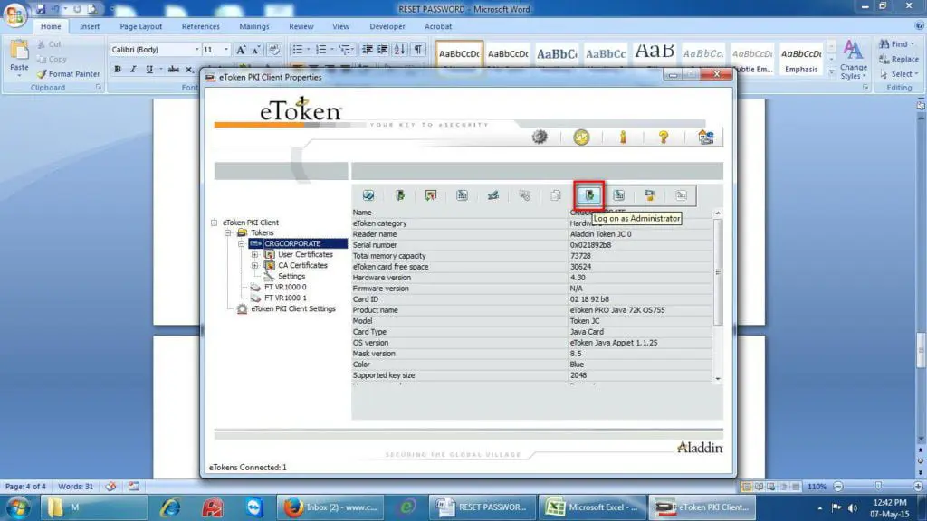 6) Then etoken name will appear in the box and put password (The pass word is same as etoken name which will be displayed in the box)