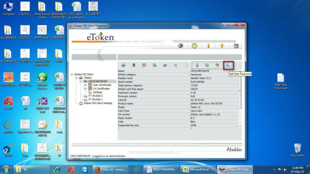 It is highly recommended that every DSC users should change their default DSC password i.e. CRG1234$. This is important for restriction of fraud usage of DSC (Digital Signature). The following steps are showing for resetting the DSC password.