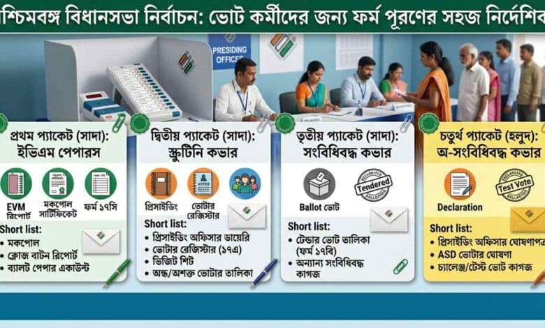 Election Forms Guide: বিধানসভা নির্বাচন এগিয়ে আসার সাথে সাথে প্রিসাইডিং অফিসার এবং পোলিং অফিসারদের দায়িত্ব বহুগুণ বেড়ে যায়। ভোটের দিন সবচেয়ে গুরুত্বপূর্ণ কাজগুলির মধ্যে একটি হল বিভিন্ন সংবিধিবদ্ধ (Statutory) এবং অ-সংবিধিবদ্ধ (Non-statutory) ফর্ম নির্ভুলভাবে পূরণ করা এবং সেগুলিকে সঠিক কভারে বা প্যাকেটে সিল করা। ভোটকর্মীদের এই কাজকে আরও সহজ এবং ত্রুটিমুক্ত করতে, আমরা ফর্ম পূরণের একটি বিস্তারিত নির্দেশিকা নিয়ে এসেছি।
