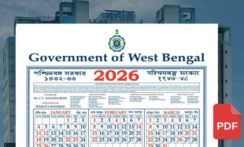 WB Calendar 2026 PDF: পশ্চিমবঙ্গ সরকারের ২০২৬ সালের সরকারি ছুটির ক্যালেন্ডার ডাউনলোড করুন